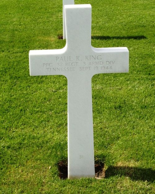 Pfc Paul K. King enlisted at Fort Oglethorpe, Georgia on 9 March 1943.He was first buried at the Temporary American Military Cemetery of Fosse, Belgium.
