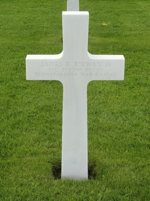 Pfc James E. Kirwan Jr. graduated from St. Agnes High School. He played basketball and softball and operated a florist business.He enlisted in Wilkes Barre, Pennsylvania on 1 April 1943.
