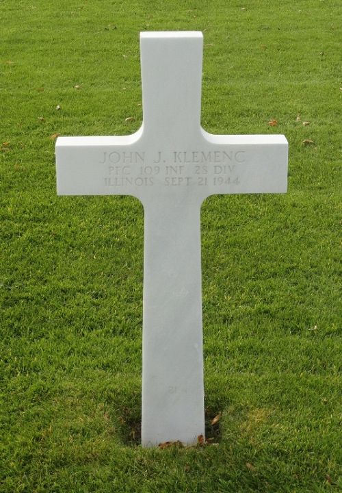 Pfc John J. Klemenc was first buried at the Temporary American Military Cemetery of Foy, Belgium.