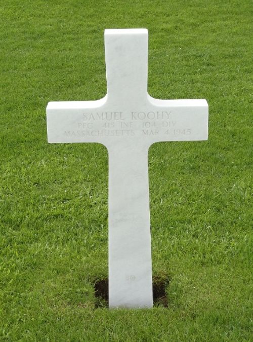 Pfc Samuel Koohy attended high school for four years and was employed by the Talbot Drug Store.He enlisted in Boston, Massachusetts on 18 August 1942.