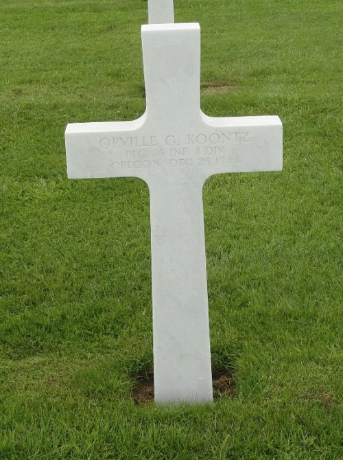 Pfc Orville G. Koontz enlisted in Portland, Oregon on 16 September 1943.He attended high school for 2 years and was a welder before he enlisted.