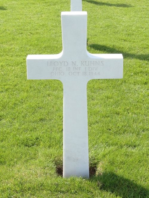 Pfc Lloyd N. Kuhns was employed by the Pittsburgh & Lake Erie Railroad in Cleveland before he enlisted in Cleveland, Ohio on 2 December 1942. He was sent overseas in October 194His brother, Pvt Samuel J. Kuhns, served with the U.S Marine Corps in the South Pacific.