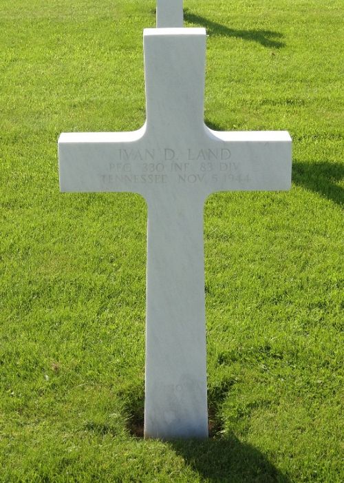 Pfc Land was reported severely wounded in action on 8 August 1944 in the vicinity of St. Malo, France. The morning report of that day mentions a direct artillery hit in the open door of a captured pillbox. The pillbox was full of wounded men, medics and a part of A Company. The powder magazin exploded causing a large flame. It is possible that Pfc Land was among the casualties. He was avacuated to the 108th Evacuation Hospital. It is not certain if he died in this hospital.