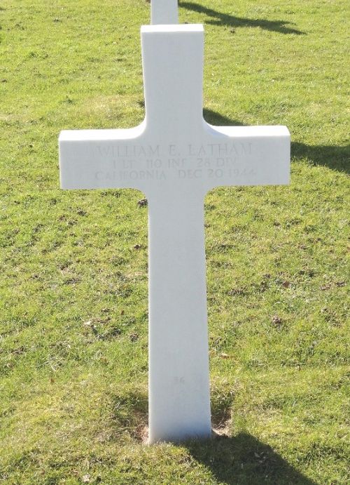 1st Lt William E. Latham graduated from Alhambra High School in 1938 and the University of California in 1942 where he was a member of the R.O.T.C.He was first buried at the Temporary American Military Cemetery of Foy, Belgium.