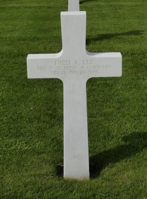 T/5 Fred A. Lee enlisted in Dallas, Texas on 30 August 1943.Source of information: Peter Schouteten, Carla Mans, www.abmc.gov, www.wwiimemorial.com, www.archives.gov – WWII Enlistment Record, www.ancestry.com - Headstone and Interment Record / 1920 Census / U.S. WWII Draft Cards Young Men