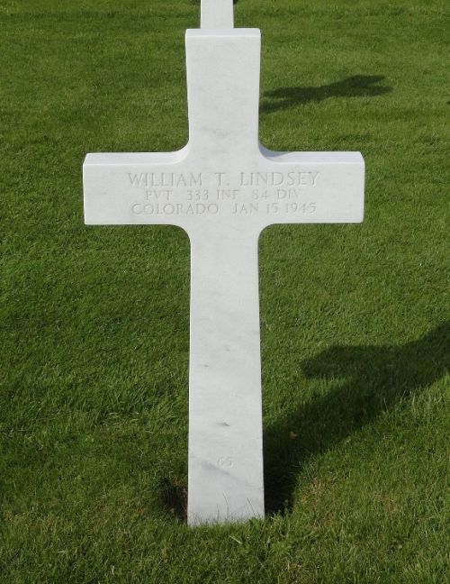 Pvt William T. Lindsey enlisted in Fort Logan, Colorado on 3 June 1944.Source of information: André Koch, Carla Mans, www.abmc.gov, www.wwiimemorial.com, www.archives.gov - WWII Enlistment Record, www.ancestry.com - 1930/1940 Census / Headstone and Interment Record
