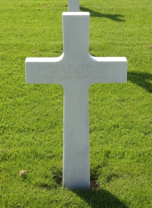 Pvt Samuel C. Lomanto worked in the manufacturing of leather products before he enlisted in Buffalo, New York on 30 November 1942.Source of information: Peter Schouteten, Carla Mans, www.abmc.gov, www.wwiimemorial.com, www.archives.gov - WWII Enlistment Record, www.ancestry.com - Headstone and Interment Record, http://9thinfantrydivision.net