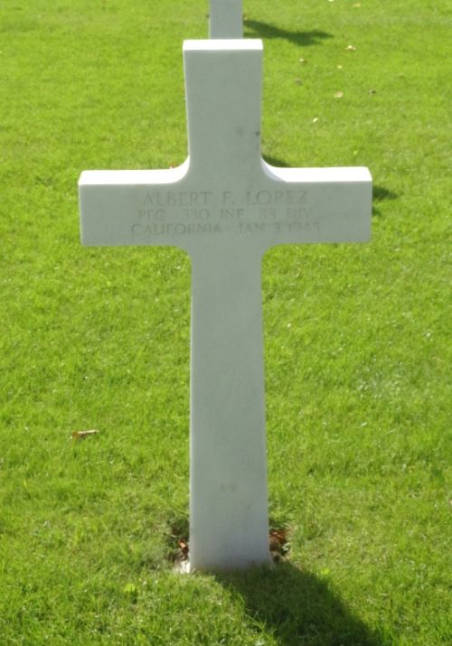 Pfc Albert F. Lopez was a driver before he enlisted in Los Angeles, California on 7 August 1943.Source of information: Peter Schouteten, www.abmc.gov, www.wwiimemorial.com, www.archives.gov – WWII Enlistment Record, www.ancestry.com - U.S., Headstone and Interment Records for U.S. Military Cemeteries on Foreign Soil, http://83rdinfdivdocs.org – After Action Report
