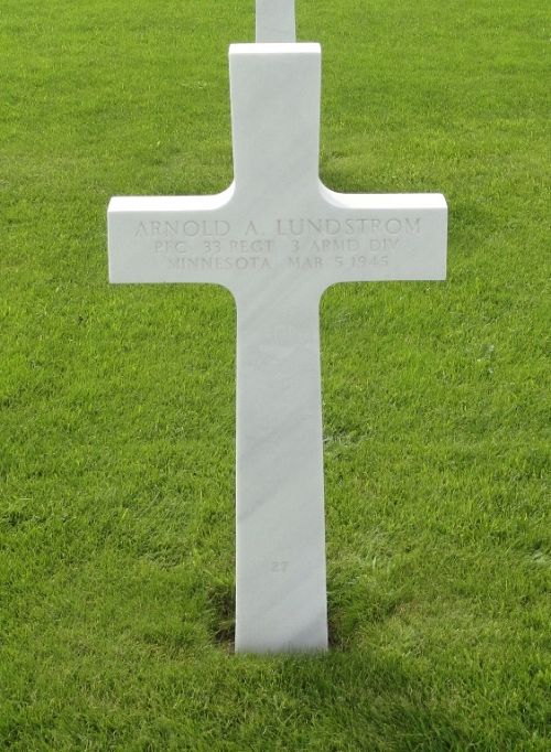 Pfc Arnold A. Lundstrom was first buried at Block YYY, Row 6, Grave 104.Source of information: Peter Schouteten, www.abmc.gov, www.wwiimemorial.com, www.findagrave.com - Jim Childers, www.ancestry.com - Headstone and Interment Record / 1920 Census