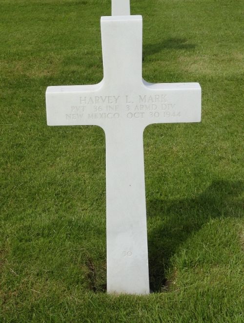 Pvt Harvey L. Mark enlisted in Phoenix, Arizona on 6 May 1942. He was was employed by the department of interior, Navajo Service in Leupp, Arizona.While in England at the time recuperating from wounds, Harvey wrote in a letter: