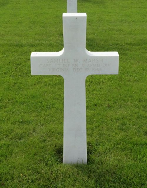 Cpt Samuel W. Marsh was a salesman before he enlisted in Richmond, Virginia on 6 May 1941.Source of information: Peter Schouteten, Carla Mans, www.abmc.gov, www.wwiimemorial.com, www.archives.gov – WWII Enlistment Record, www.ancestry.com - Headstone and Interment Record / U.S. WWII Draft Cards Young Men / 1920/1940 Census