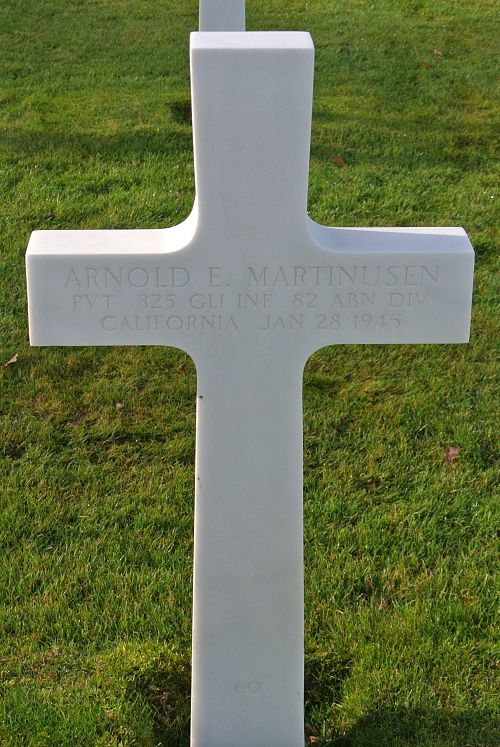 Pvt Arnold E. Martinusen enlisted in Los Angeles, California on 26 June 1943.He first trained to become a pilot before he volunteered for the paratrooper.