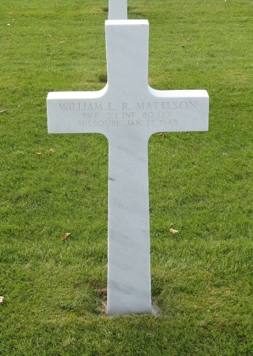 Pvt William L. R. Matteson enlisted on 2 May 1944 at Ft Leavenworth, Kansas.He was first buried at the Temporary American Military Cemetery of Foy, Belgium.