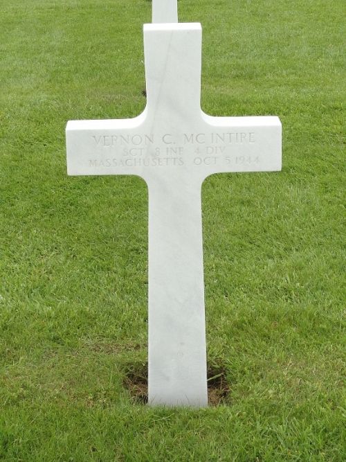 Vernon C. Mc Intire attended college and was a shipping clerk before he enlisted in Boston, Massachusetts on 31 July 1942.Source of information: Danny van der Groen, Peter Schouteten, Carla Mans, www.abmc.gov, www.wwiimemorial.com, www.archives.gov – WWII Enlistment Record, www.ancestry.com - Headstone and Interment Record / U.S. WWII Draft Cards Young Men / 1940 Census