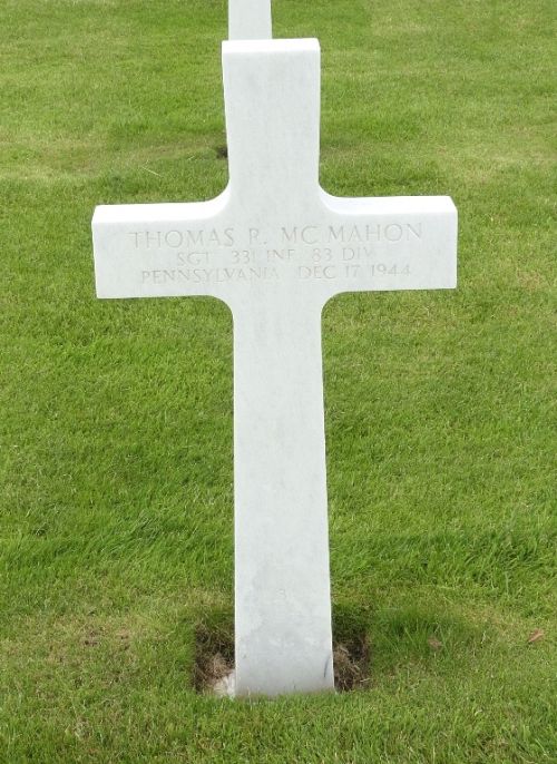 Sgt Thomas R. Mc Mahon graduated from West Philadelphia Catholic Boys High School in 1941 and was employed by the Ford Motor Co. in Chester.He volunteered for the Army of the United States in Philadelphia, Pennsylvania on 21 October 1942 and was sent overseas in March 1944.