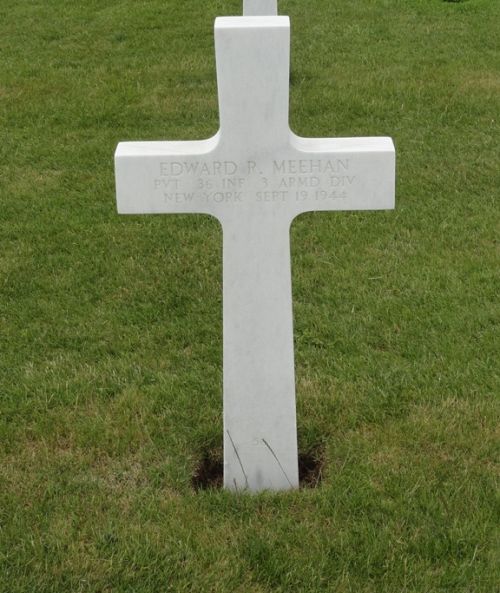 Pvt Edward R. Meehan joined the Regular Army on 30 October 1939. He attended high school for 2 years and was a Skilled motion picture projectionist before he enlisted.Pvt Edward R. Meehan was first buried at Temporary American Military Cemetery Fosse, Belgium Block H, Row 7, Grave 136.