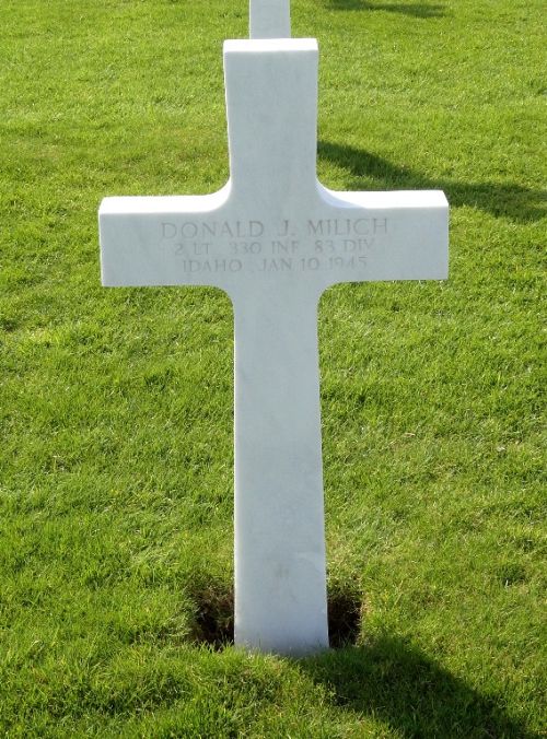 2nd Lt Donald J. Milich graduated from High School in Boise and attended the University of Idaho until he joined the Regular Army in Moscow, Idaho on 16 May 1942. He attended Officer's Candidate School at Fort Benning in Georgia, where he was commissioned in June 1944.Source of information: Peter Schouteten, Mary M. Hinman, www.abmc.gov, www.wwiimemorial.com, www.archives.gov – WWII Enlistment Record, www.ancestry.com - Headstone and Interment Record /
