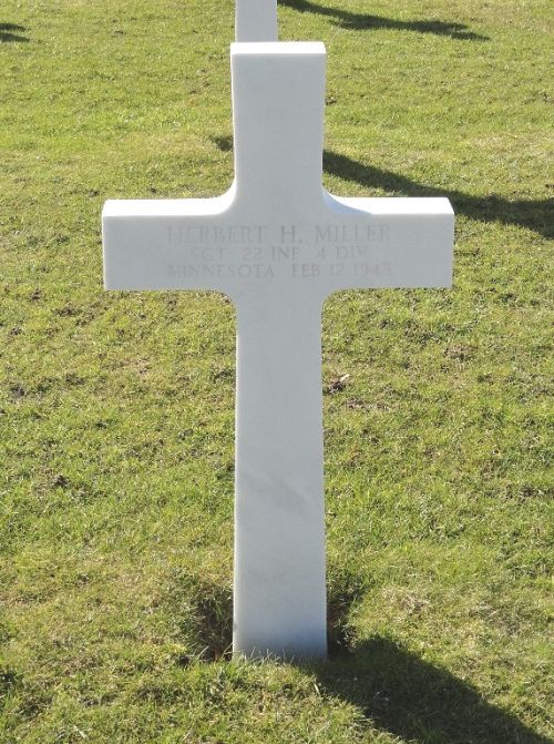 Sgt Herbert H. Miller was first buried at the Temporary American Military Cemetery of Foy, Belgium.Source of information: Danny van der Groen, Peter Schouteten, Astrid van Erp, www.abmc.gov, www.wwiimemorial.com, www.ancestry.com - Headstone and Interment Record / 1940 Census, www.fold3.com - WWII Draft Card