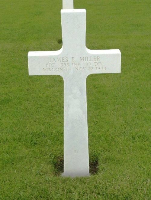 Pfc James E. Miller graduated from Appleton High School. He attended the University of Wisconsin in a pre-law course in September 1941 and finished one and a one-half years.
