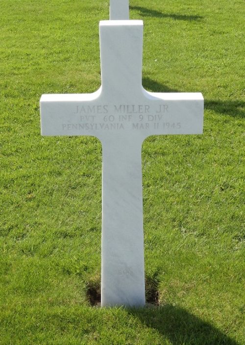 Pvt James Miller Jr. was a power station operator before he enlisted in Greensburg, Pennsylvania on 4 August 1942.Source of information: Peter Schouteten, Carla Mans, www.abmc.gov, www.wwiimemorial.com, www.archives.gov - WWII Enlistment Record, www.ancestry.com - Headstone and Interment Record / U.S. WWII Draft Cards Young Men, http://9thinfantrydivision.net