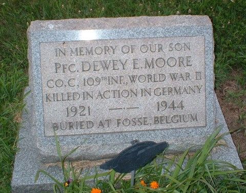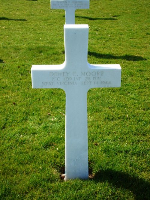 Pfc Moore was first buried at the Temporary American Military Cemetery of Fosse, Belgium.