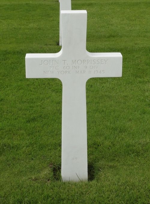 Source of information: Peter Schouteten, Carla Mans, www.abmc.gov, www.wwiimemorial.com, www.archives.gov - WWII Enlistment Record, www.ancestry.com - Headstone and Interment Record / U.S. WWII Draft Cards Young Men / 1920 Census, http://kempermemorialpark.org/Park/Profiles/Morrissey.htm, http://9thinfantrydivision.net, www.newspapers.com - The Daily Times - 23 March 1945