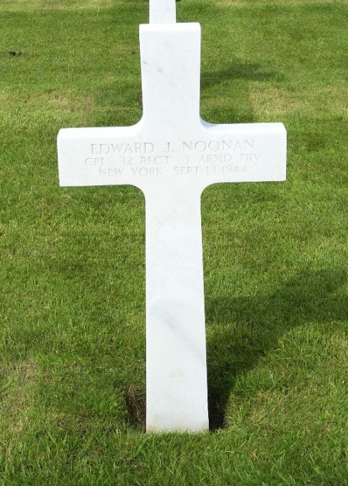 Cpl Edward J. Noonan was first buried at Temporary American Military Cemetery Henri-Chapelle, Belgium Block C, Row 4, Grave 73.