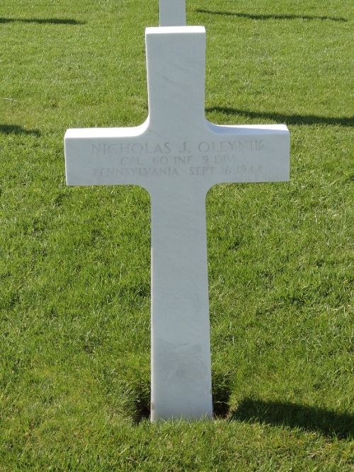 Cpl Nicholas J. Oleynik was a miner before he enlisted in Altoona, Pennsylvania on 4 December 1942.Source of information: Peter Schouteten, Astrid van Erp, www.abmc.gov, www.wwiimemorial.com, www.archives.gov – WWII Enlistment Record, www.ancestry.com - Headstone and Interment Record / 1940 Census / Veteran Compensation Application File, http://9thinfantrydivision.net