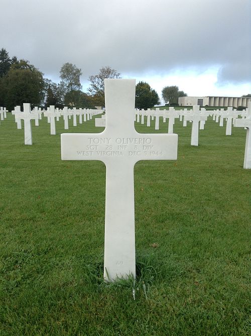 Tony Oliverio attended Washington Irving High School in Clarksburg.Source of information: Terry Hirsch, www.abmc.gov, www.ancestry.com - West Virginia Memory Project / U.S., Headstone and Interment Records for U.S. Military Cemeteries on Foreign Soil, www.wwiimemorial.com