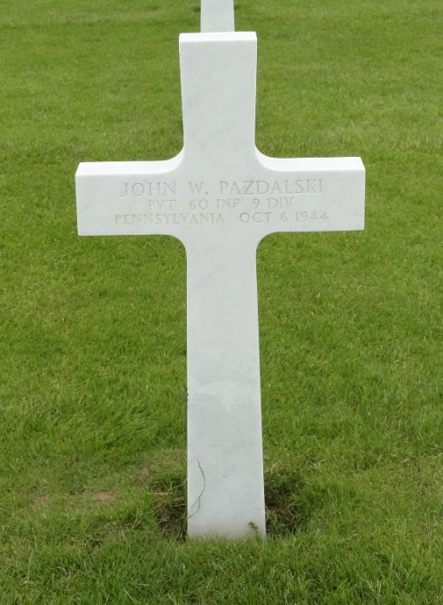 Pvt John W. Pazdalski was employed by the Sinclair Oil Refinery before he enlisted in New Cumberland, Pennsylvania on 9 March 1944 and was sent overseas on 11 August 1944.He was one of five sons who served during the war.