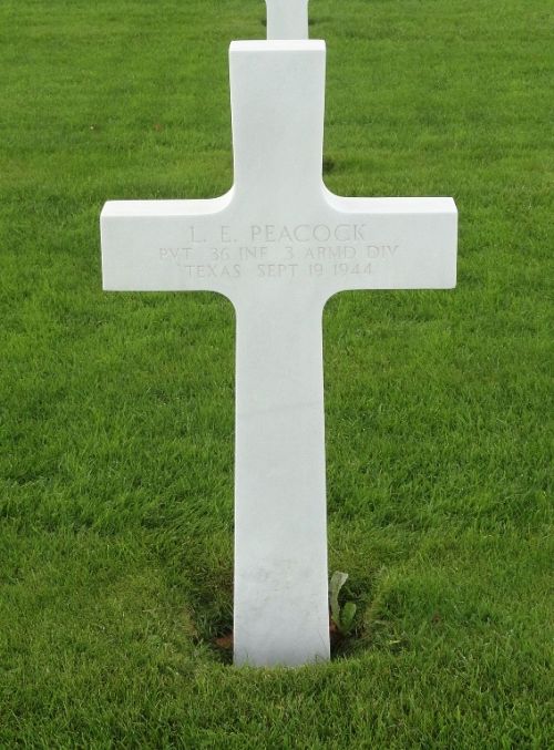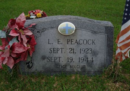 Pvt. L. E. Peacock attended McLead High School.He was first buried at the Temporary American Military Cemetery of Fosse, Belgium.