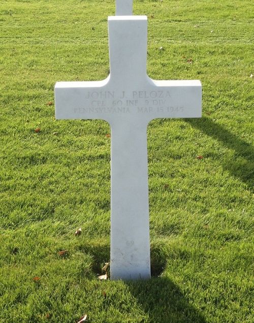 Cpl John J. Peloza worked in the production of cement, concrete, gypsum and plaster before he enlisted in Erie, Pennsylvania on 15 August 1942.Source of information: Peter Schouteten, Carla Mans, www.abmc.gov, www.wwiimemorial.com, www.archives.gov - WWII Enlistment Record, www.ancestry.com - Headstone and Interment Record / U.S. WWII Draft Cards Young Men / 1930 Census, http://9thinfantrydivision.net