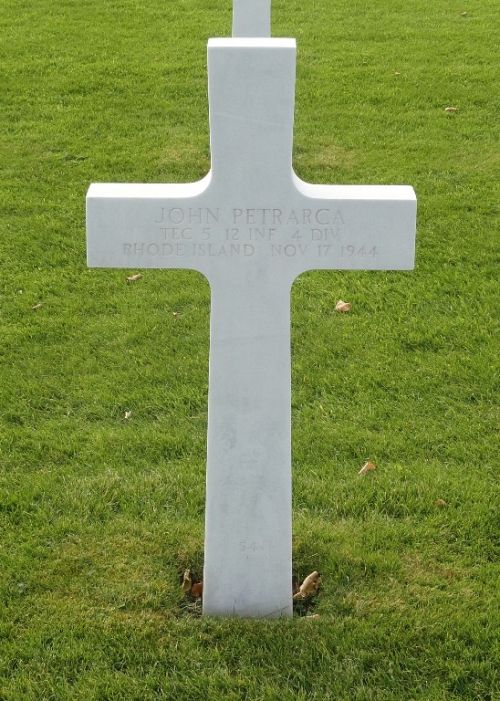 T/5 John Petrarca enlisted in Providence, Rhode Island on 24 February 1941.Source of information: Peter Schouteten, Carla Mans, www.abmc.gov, www.wwiimemorial.com, www.archives.gov – WWII Enlistment Record, www.ancestry.com - Headstone and Interment Record / U.S. WWII Draft Cards Young Men / Stephanie Boyce Family Tree / 1930 Census
