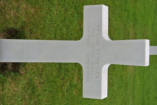 Pvt Frank Porenta was a cook before he enlisted in New York City, New York, on 5 February 1944.He was first buried at the Temporary American Military Cemetery of Fosse, Belgium.