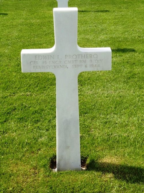 Cpl Edwin L. Prothero was a machinist apprentice before he enlisted in New Cumberland, Pennsylvania on 28 October 1941.He was first buried at the Temporary American Military Cemetery of Fosse, Belgium.