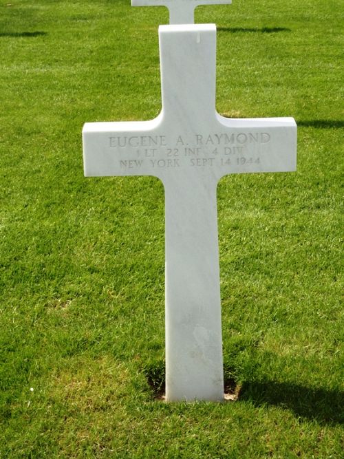 1st Lt Eugene A. Raymond was a guard and watchman before he enlisted at Fort Jay, New York on 29 June 1942.He was first buried at th Temporary American Military Cemetery of Fosse, Belgium.