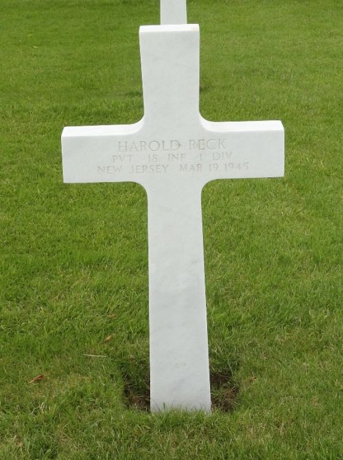 Pvt Harold Reck was first buried at Temporary American Military Cemetery Henri Chapelle Block J4, Row 10, Grave 186.