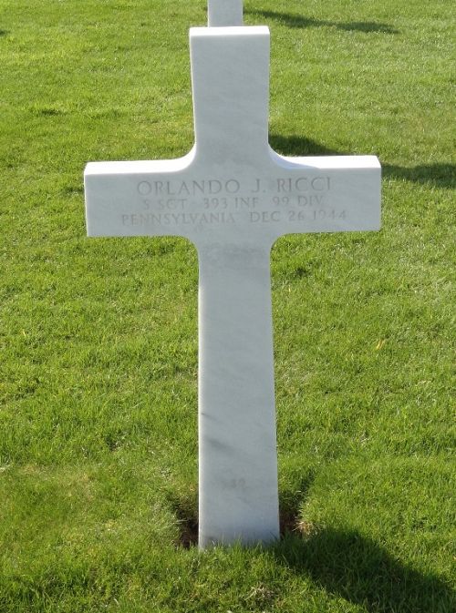 S/Sgt Orlando J. Ricci was a sales clerk before he enlisted in Allentown, Pennsylvania on 30 November 1942.He was killed by a large caliber shell that landing just beside his foxhole. He was killed instantly.