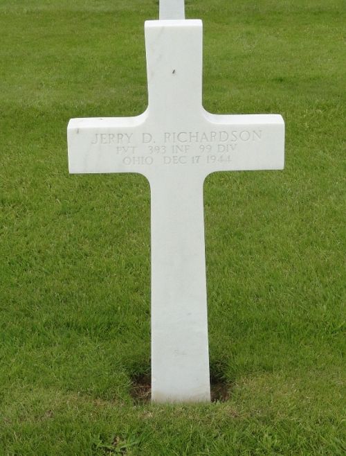 Pvt Jerry D. Richardson worked on a farm before he enlisted at Fort Thomas Newport, Kentucky on 29 May 1944.Source of information: Peter Schouteten, Carla Mans, www.abmc.gov, www.wwiimemorial.com, www.archives.gov – WWII Enlistment Record, www.ancestry.com - Headstone and Interment Record / U.S. WWII Draft Cards Young Men / Beard Family Tree / 1940 Census