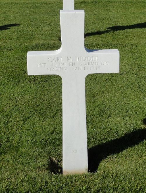 Pvt Carl M. Riddle first buried at the Temporary American Military Cemetery of Foy, Belgium.