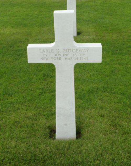 Pvt Earle K. Ridgeway enlisted in New York City, New York on 30 August 1944.He attended high school for 3 years and was a machinist apprentice before he enlisted.