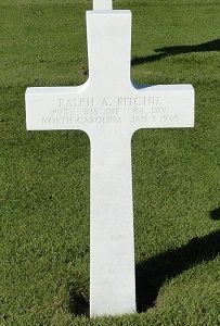 Pvt Ralph A. Ritchie enlisted at Fort Bragg, North Carolina on 11 April 1944.His initial burial took place on Fosse Cemetery, Namur, Belgium.