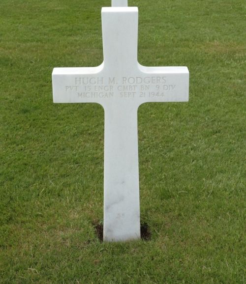 Pvt Hugh M. Rodgers was reported wounded in action the day before. He was overseas since April 1944.He was first buried at the Temporary American Military Cemetery of Fosse, Belgium.