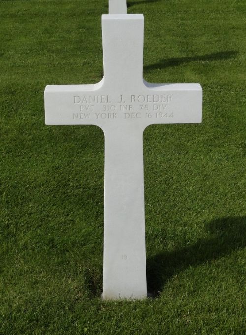 Pvt Daniel J. Roeder enlisted at Camp Upton Yaphank, New York on 6 April 1944.He was first buried at Block RRR, Row 1, Grave 15.