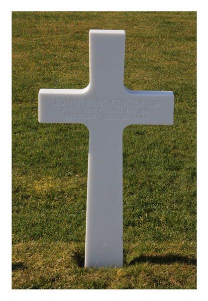 Pvt John E. Roediger Jr. enlisted at Jefferson Barracks, Missouri, on 30 June 1943.He attended 3 years of high school before he enlisted.
