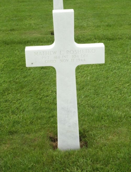 Source of information: Raf Dyckmans, Terry Hirsch, Kathy McDermott, www.abmc.gov, www.wwiimemorial.com, www.archives.gov - WWII Enlistment Record, www.ancestry.com - U.S., Headstone and Interment Records for U.S. Military Cemeteries on Foreign Soil / Ohio Birth Index, 1908-2011 / Donald Roshetko obituary 2012