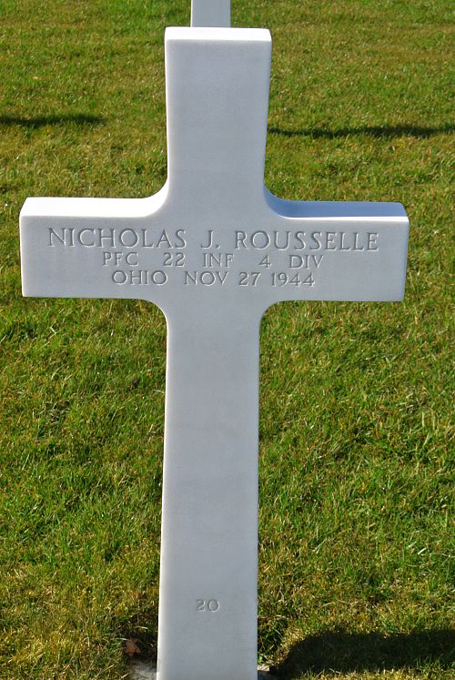 Pfc Nicholas J. Rousselle enlisted in Columbus, Ohio on 2 November 1943.He attended high school for 1 year and was a mechanic and repairman before he enlisted.