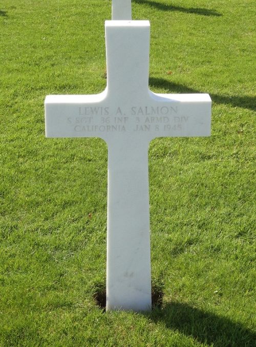 S/Sgt Lewis A. Salmon was first buried at Temporary American Military Cemetery Henri-Chapelle, Belgium Block III, Row 3, Grave 56.Source of information: Peter Schouteten, Sheree Dowdle, www.abmc.gov, www.wwiimemorial.com, www.ancestry.com - Headstone and Interment Record / WWII Jewish Servicemen Cards / U.S. Draft Cards Young Men / 1930/1940 Census
