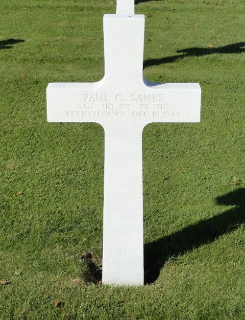 Sgt Paul G. Sames enlisted in Allentown, Pennsylvania on 27 January 1944.He was first buried at the Temporary American Military Cemetery of Foy, Belgium.