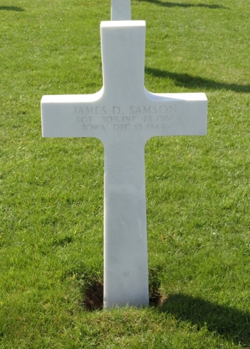 Sgt James D. Samson was first buried at Block QQ, Row 1, Grave 7.Source of information: Peter Schouteten, www.abmc.gov, www.findagrave.com – James L. Cooper, Richard Blunk, www.wwiimemorial.com, www.ancestry.com - U.S., Headstone and Interment Records for U.S. Military Cemeteries on Foreign Soil / Samson Family Tree